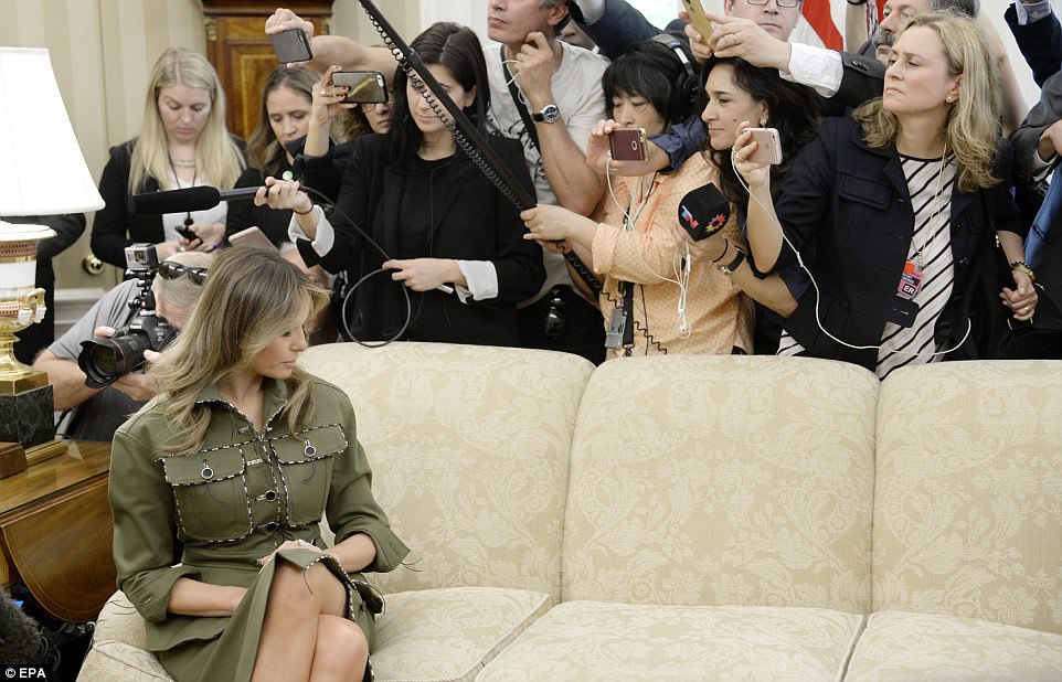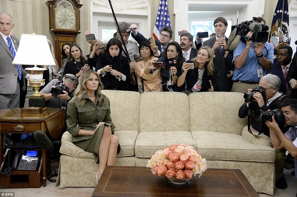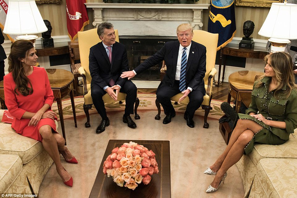 U.S First Lady Melania Trump  appears with Argentinian First Family at the White House on April 27th for a joint meet-and-greet and political discussion.