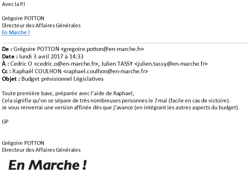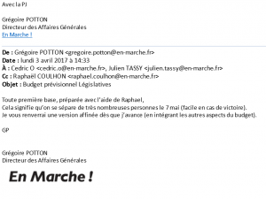 As pictured above (we are attempting to translate the e-mail) Â an e-mail appears to be about a budget plan and related to financial means for the campaign. (We’re having trouble getting in contact with our French reporters since the government ordered French journalists to stop publishing this info).