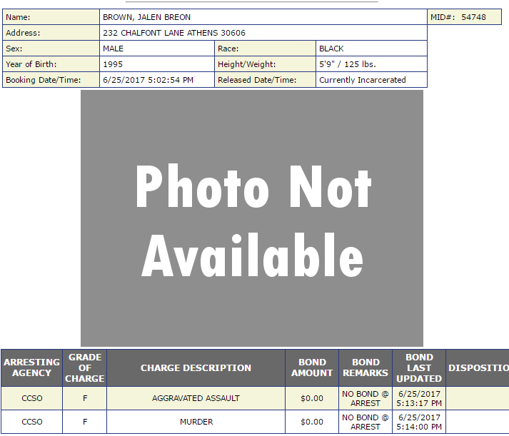 ATHENS, GEORGIA — In the death of our dear friend Ava Barrin, a Georgia man has been charged and jailed over her murder.    Jalen Breon Brown, 21,  shot and killed Barrin yesterday in the parking lot of an Athens apartment complex after a domestic dispute.