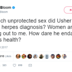 Now, his sexual escapades are catching up with him. In the latest  escapade, the woman, identified as “Jane Doe” claims that Usher willing infected her with  herpes (now, this usually can happen whether they knew they had it or not. Herpes doesn’t always show up visibly).