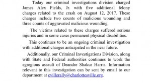 James Alex Fields Jr, 20, is a man that probably will never see the light again (or at least we hope). Federal court documents obtained this weekend confirmed that he has now been hit with additional felony charges. Initially, he was charged with intentionally and maliciously wounding others; using a motor vehicle to cause intentional harm to others, and for murder(s).
