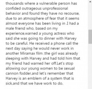 McGowan,  was one of the original stars to come forth with her own story on Weinstein. (She famously and quietly settled for $100,000  in a case against Weinstein in the 1990’s for sexual harassment..).   Now, she’s also one of the stars currently in Weinstein’s cross hairs as Twitter.com has suspended her account for attempting to discuss her scary encounters with the former disgraced film executive.    Twitter alleges that she “violated their Terms of Service” but won’t say how.