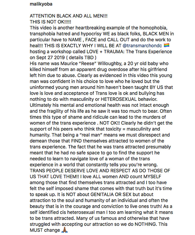 For reasons that do still appear to be partially unclear. Â In an Instagram post over the weekend, the actor took to social media revealing that he has long had an attraction to M2F transgender people (they are males who are feminine and have transitioned to/present themselves a woman).