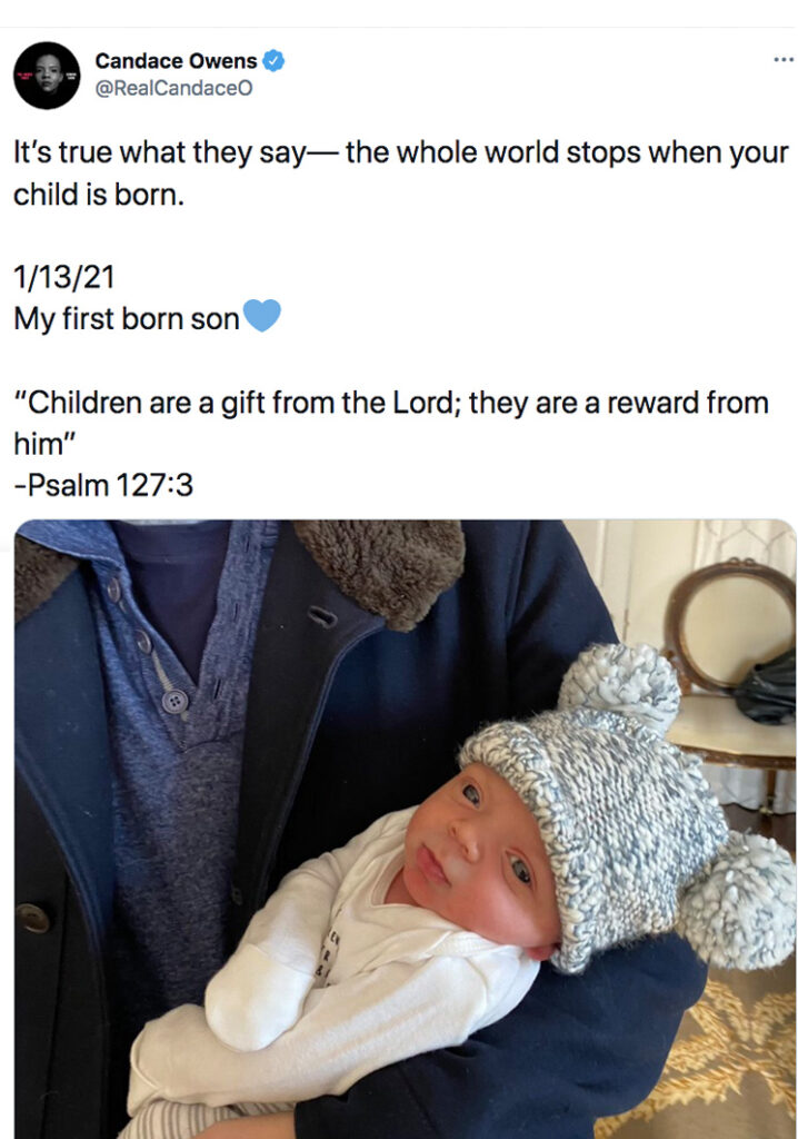 Candace Owens is a first time Mom, hopefully it teaches her to finally be polite to others