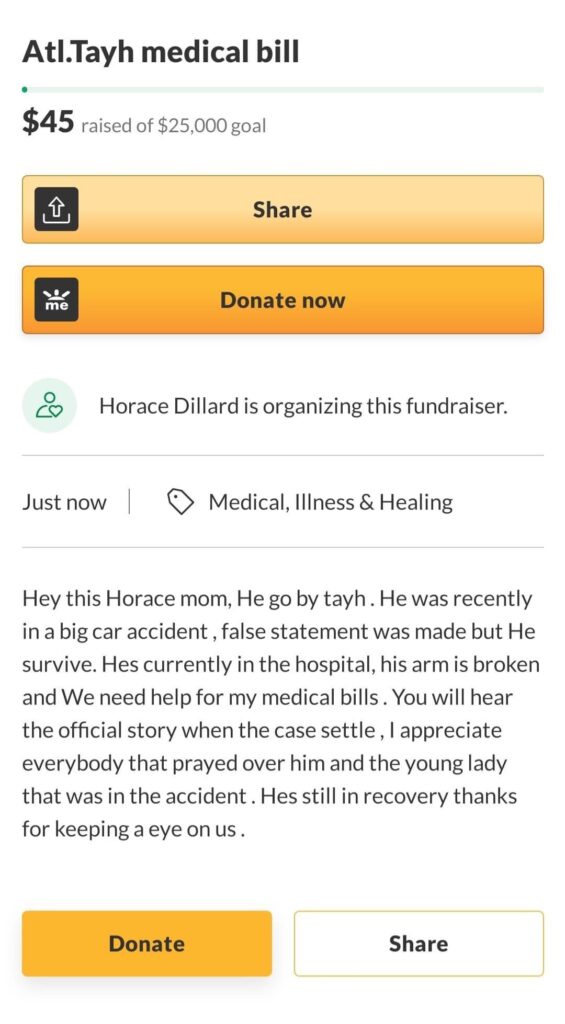 UPDATE: It appears a Gofundme with his name has since appeared online claiming he is the victim instead of the other way around.