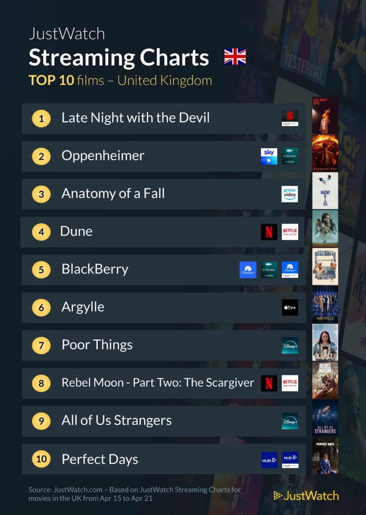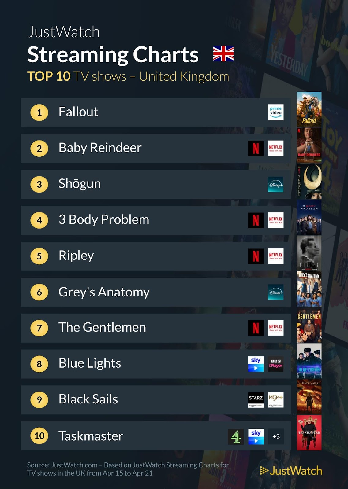 Home2024April27Streaming Guide: Here are the top ten films and TV shows in the UK this week Posted in TV Streaming Guide: Here are the top ten films and TV shows in the UK this week on 2024-04-272024-04-27 Bazaar Daily News Donate Reading Time: < 1 minute Courtesy of our friends at Just Watch. 0 Facebook 0 Twitter 0 Pinterest 0 Facebook-messenger 0 Whatsapp 0 Email 0 Reddit