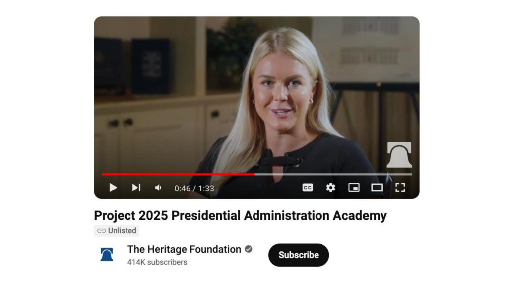 DESPITE DONALD TRUMP’S CLAIM THAT HE DOES NOT KNOW ANYTHING ABOUT PROJECT 25′ TWO OF HIS MOST IMPORTANT FAR-RIGHT ALLIES HAVE STARRED IN VIDEOS FOR THE PROJECT. THE HERITAGE FOUNDATION THOUGHT THEY WERE SLICK AND UNLISTED THEM ON YOUTUBE SO IF YOU DID NOT KNOW ABOUT THEM — THEN THEY WOULD NOT APPEAR.