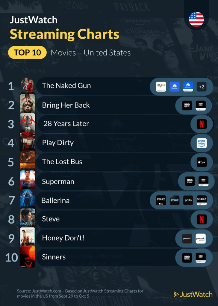 Posted in TV Streaming Guide: Here are the top 10 movies & TV shows in the US this week on 2025-09-302025-09-30 Posted by Bazaar Daily News